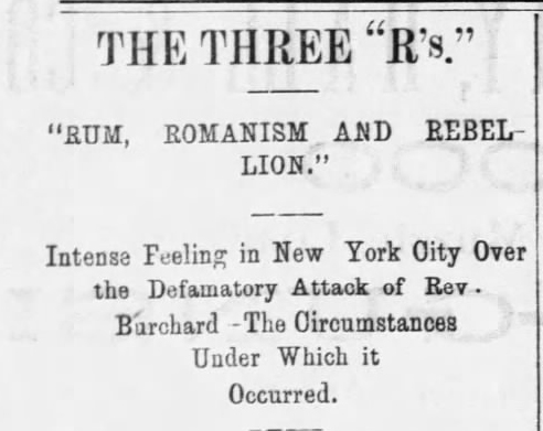 Now we have Immigrants, Trans and Paid Agitators. Same idea, just not alliterative. Click above to expand … [Read more...] about From 1884 – Rum, Romanism And Rebellion – We’ve Come A Long Way