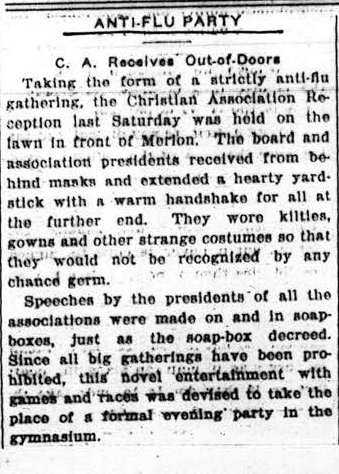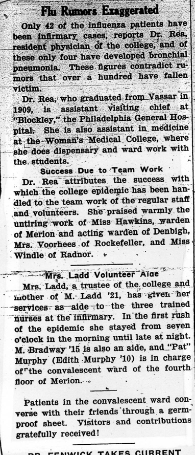 Bryn Mawr College was one of seven communities studied where “relatively few if any cases of influenza, and no more than one influenza-related death while NPI were enforced during the second wave of the 1918-1920 influenza pandemic.”